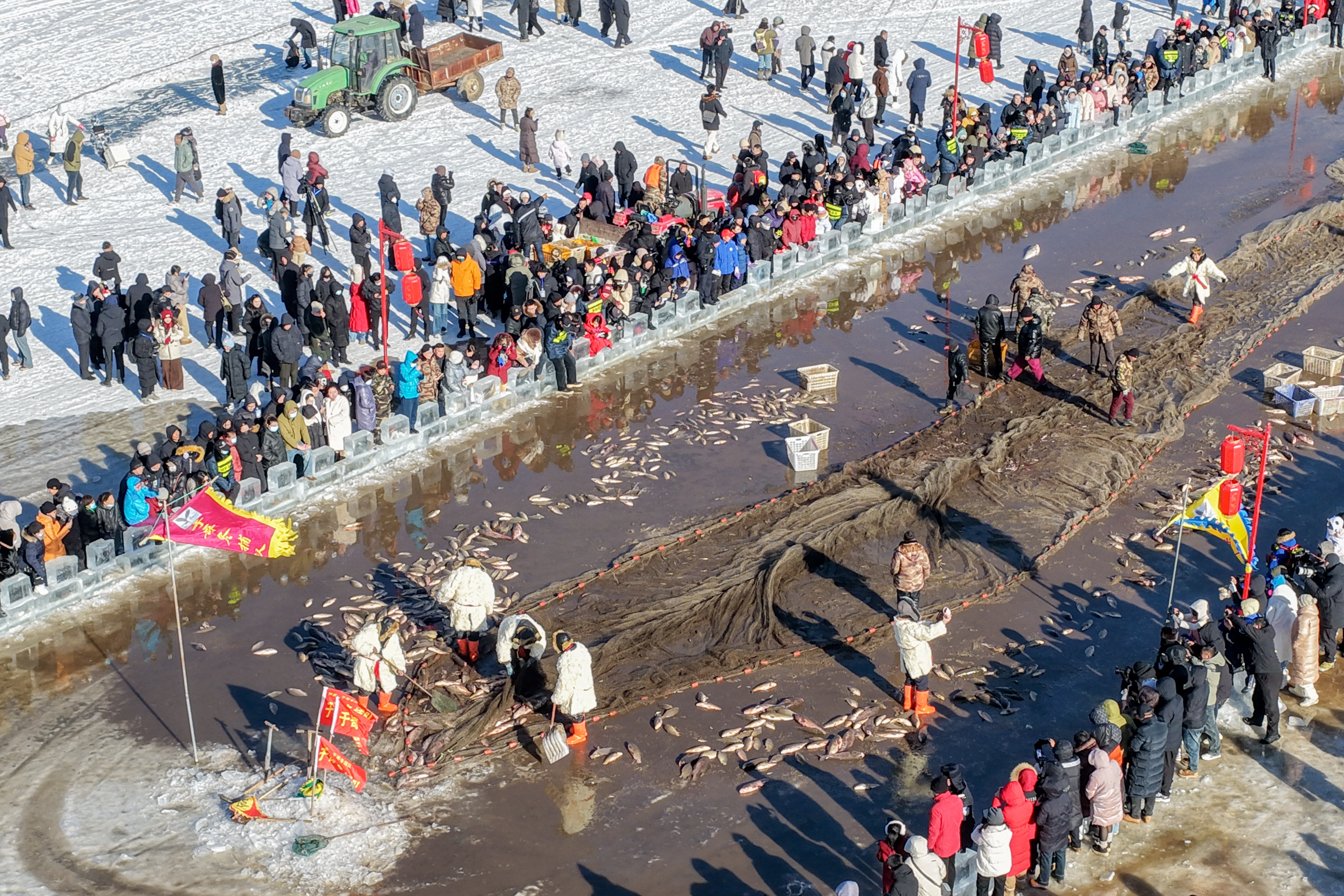 1月10日,哈素海第四届冬捕节暨冰雪旅游系列活动在内蒙古呼和浩特市土默特左旗开幕。活动以冬捕文化为核心,融合冰雪娱乐、温泉休闲、美食体验、民俗展示等多元业态,吸引众多市民和游客前来观看、体验。